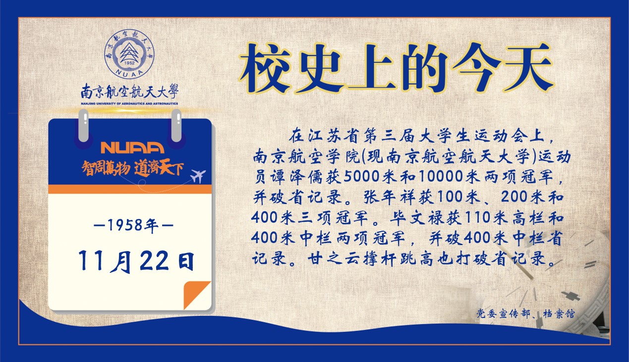 在江苏省笫三届大学生运动会上,南京航空学院(现南京航空航天大学)运动员谭泽儒获5000米和10000米两项冠军,并破省记录。张年祥获100米、200米和400米三项冠军。毕文禄获110米高栏和400米中栏两项冠军,并破400米中栏省记录。甘之云撑杆跳高也打破省记录。