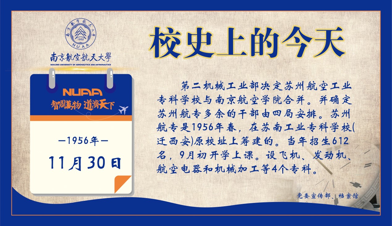 第二机械工业部决定苏州航空工业专科学校与南京航空学院合并。并确定苏州航专多余的干部由四局安排。苏州航专是1956年春,在苏南工业专科学校(迁西安)原校址上筹建的。当年招生612名,9月初开学上课。设飞机、发动机、航空电器和机械加工等4个专科。
