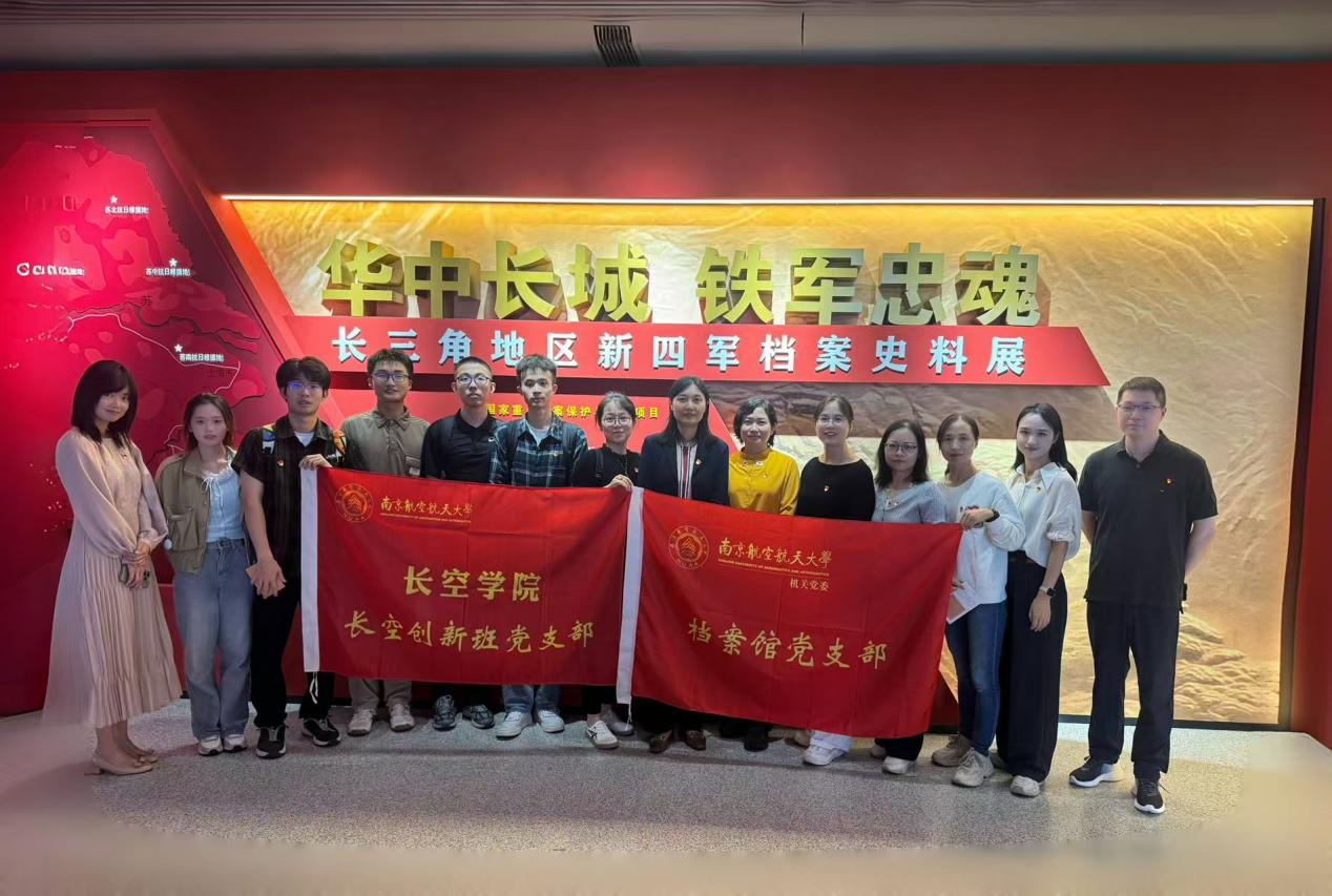 为深入学习贯彻习近平总书记在纪念中国人民抗日战争暨世界反法西斯战争胜利80周年大会上重要讲话精神,传承和弘扬伟大抗战精神,深化爱国主义教育、革命传统教育和理想信念教育,10月16日上午,档案馆党支部与长空学院长空创新班党支部共同参观 “华中长城 铁军忠魂——长三角地区新四军档案史料展”,在珍贵档案中重温革命历史,在红色记忆中传承奋斗精神。